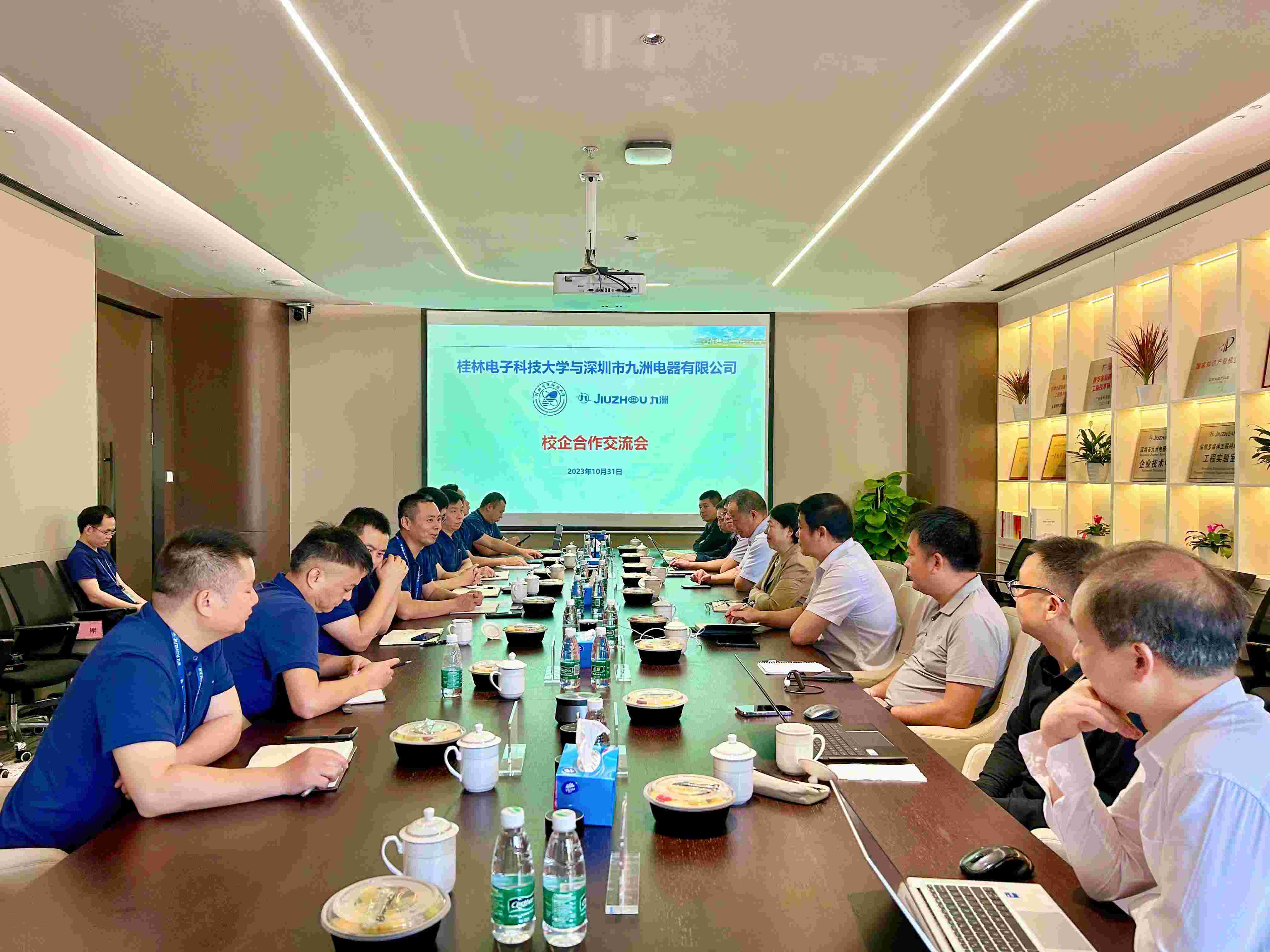 為加強(qiáng)校企合作交流,實(shí)現(xiàn)校企優(yōu)勢(shì)互補(bǔ)、資源共享,探索產(chǎn)教融合新模式,10月31日上午,桂林電子科技大學(xué)副校長(zhǎng)周婭一行蒞臨深圳市九洲電器有限公司參觀(guān)調(diào)研,并就“校企合作、產(chǎn)教融合”展開(kāi)深入交流。公司總經(jīng)理韓高典、副總經(jīng)理石旭科、夏兵及桂電校友代表參加了接待交流。