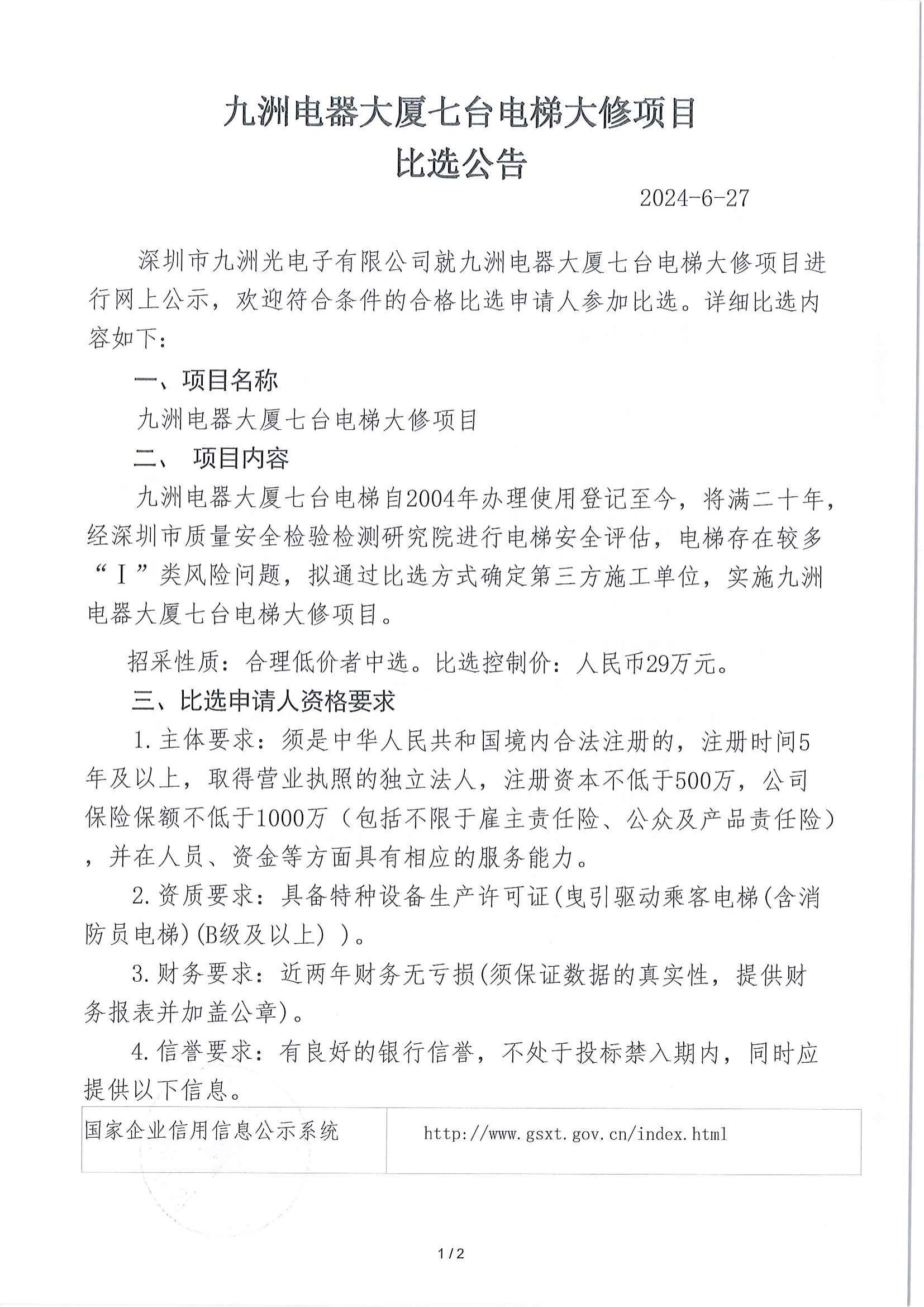 2024-6-27 九洲電器大廈七臺(tái)電梯大修項(xiàng)目比選文件.pdf