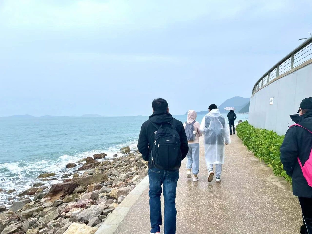 活動當天,南方的初冬濕冷中還伴隨著蒙蒙細雨,但同事們帶著風雨無阻的樂觀心態(tài)和熱情攜手出發(fā),雨中的海浪與鳥雀之聲比平時更澎湃,下雨天似乎給本次山海征途增添了些許未知的驚喜。