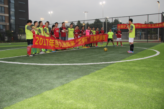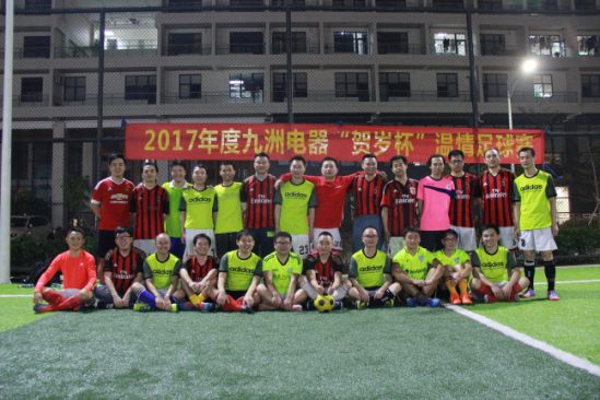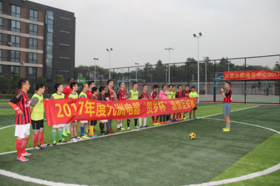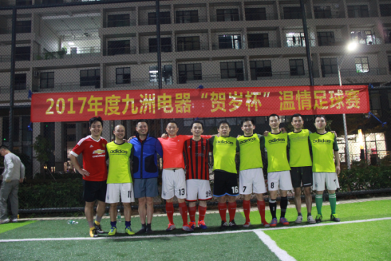 為表達新老隊員對深九足球的大力支持。深圳市九洲電器足球隊特于2017年12月26日下午五點在橋城東足球場舉辦了一場以“大愛九洲,溫暖九洲”為主題, 由深九足球隊新老成員組成的“賀歲杯”溫情足球賽。本次球賽特別邀請人員有前三任隊長,分別為:成立深九足球隊的首屆隊長,袁隊;盡職盡責的第二屆隊長,楊隊;提高了球隊熱情的第三屆隊長,羅隊。感謝他們?yōu)榍蜿牻ㄔO(shè)所付出的努力和熱情。另外,球賽還特別邀請了:深九元老隊員2位參賽,感謝他們對球隊的幫助與付出。為了賽場秩序有條不紊,特邀請裁判一枚。