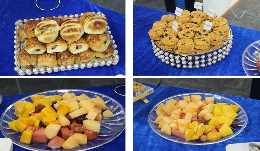 現(xiàn)場不僅有精彩的干貨培訓課程,更有美味佳肴讓人垂涎欲滴,深圳九洲為大家提供美味茶歇,課間休息時間,學員們前往茶歇區(qū),分享美食,喜笑顏開。