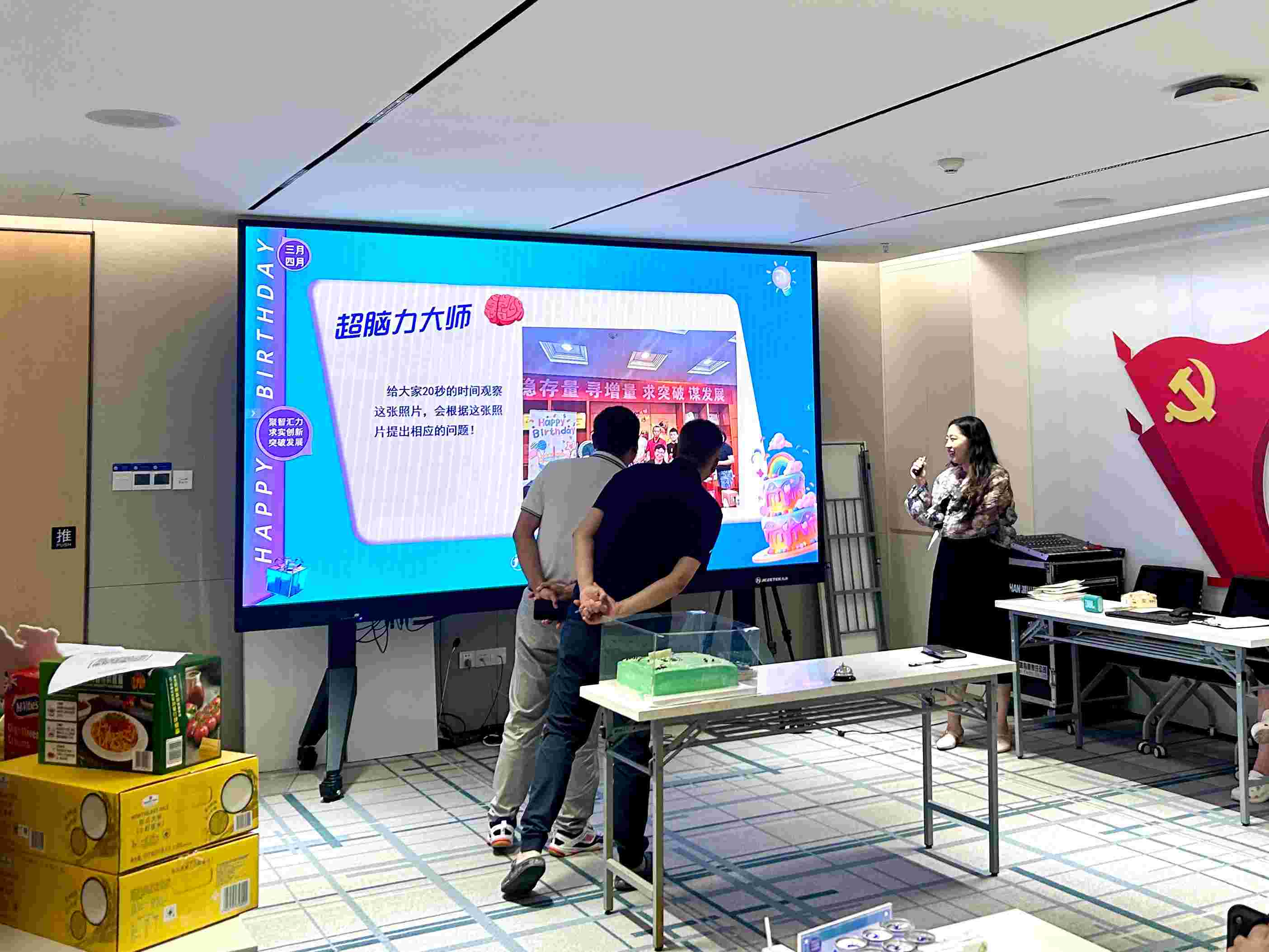 陳浩總的寄語,讓現(xiàn)場熱血沸騰了起來。大家?guī)е有那閬淼搅司o張刺激的團(tuán)隊(duì)共創(chuàng)環(huán)節(jié),壽星們被分成“諸葛亮隊(duì)”、“愛迪生隊(duì)”,經(jīng)過“超腦力大師”、“共創(chuàng)畢加索”等考驗(yàn)團(tuán)體凝聚和創(chuàng)意創(chuàng)新的三輪挑戰(zhàn),讓大家在游戲中感悟聚智匯力、團(tuán)結(jié)協(xié)作的力量。