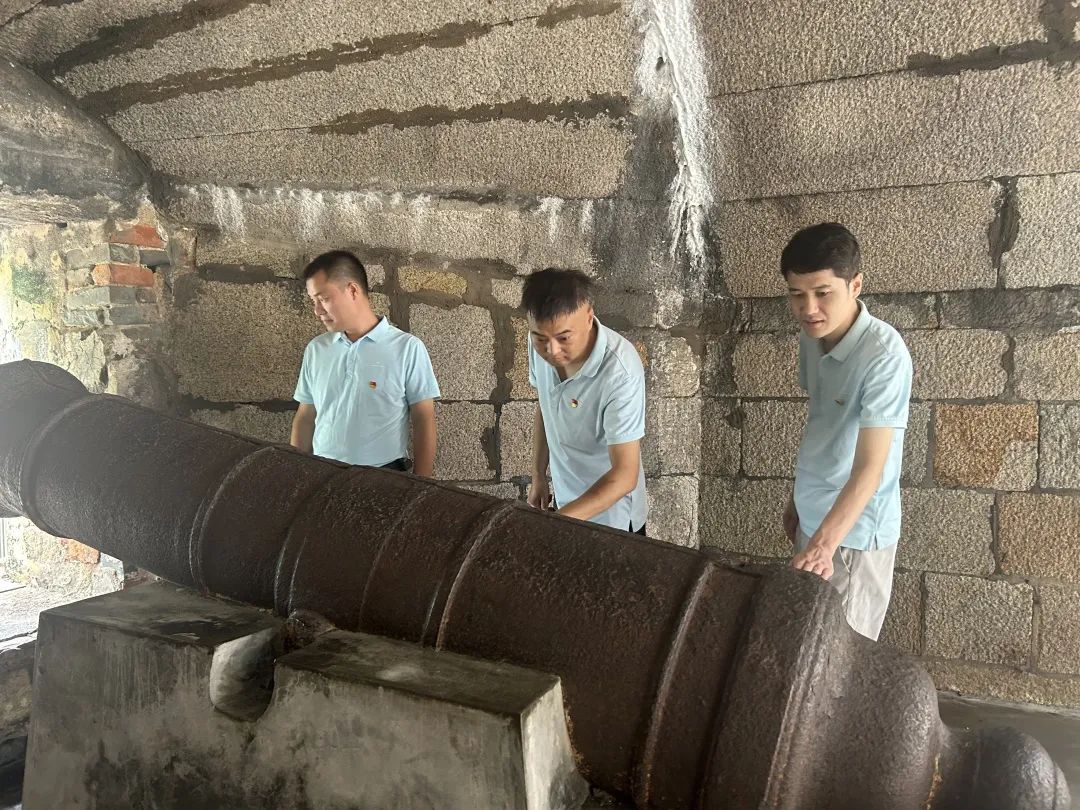 “遙觀碧海出滄灣,滾滾波流過峽關(guān)”,平靜的海面曾經(jīng)炮火紛飛,威遠(yuǎn)炮臺(tái)歷盡風(fēng)雨洗禮,黨員們用手輕撫著他,感受著歷史的溫度,是那么蒼涼、悲壯,仿佛愛國英雄關(guān)天培誓死守護(hù)炮臺(tái)、守護(hù)國土的一幕重現(xiàn)。