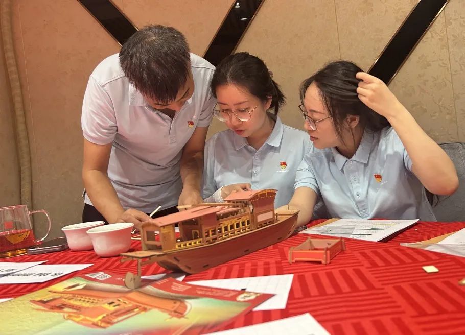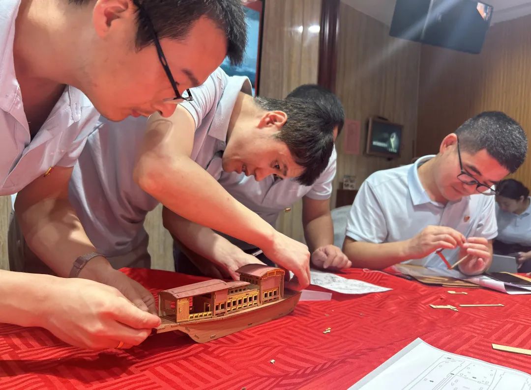 下午,黨員們開始了“重返1921”紅色劇本研讀活動(dòng),旨在注入黨史學(xué)習(xí)年輕態(tài),解鎖主題黨日新模式,主要分為“星星之火-前往上?!薄ⅰ捌咴铝骰?望志路106號(hào)”、“八月驕陽-嘉興南湖紅船”等內(nèi)容,通過觸發(fā)任務(wù)、全員解密、紅船制作、劇本演繹等沉浸式體驗(yàn),帶領(lǐng)黨員們穿越歷史時(shí)空,走進(jìn)崢嶸歲月,感悟黨史,感悟紅色文化,致敬革命先輩,汲取奮進(jìn)力量。