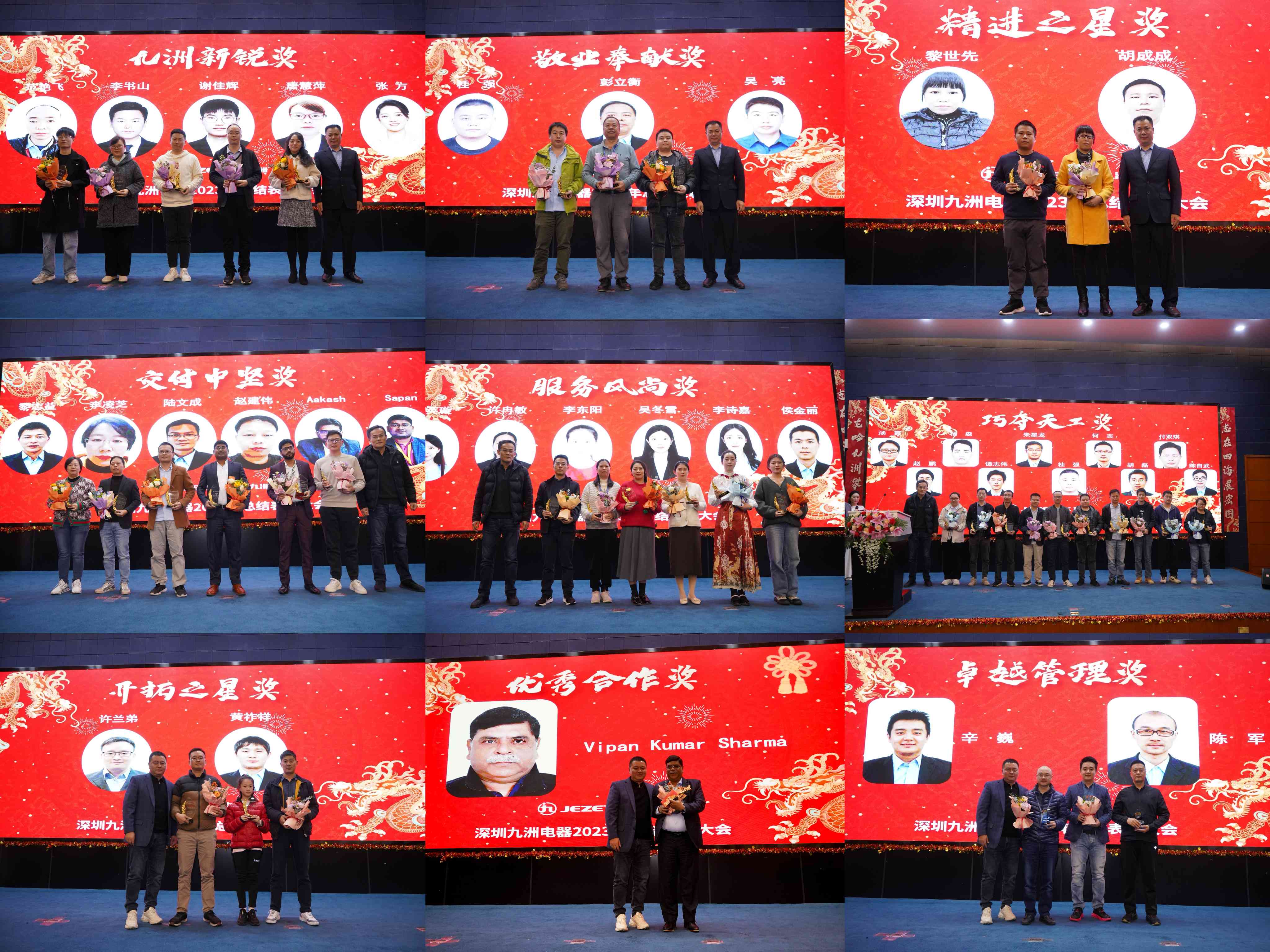 “龍吟九洲攀云霄,志在四海展宏圖”,1月27日下午,深圳市九洲電器有限公司在九洲電器大廈多功能廳成功舉辦2023年總結(jié)表彰大會(huì)。大會(huì)以“龍吟九洲展輝煌”為主題,充分展現(xiàn)了深圳九洲電器立足大灣區(qū)、放眼全世界,將“九洲”品牌聲名遠(yuǎn)揚(yáng)的決心。公司領(lǐng)導(dǎo)、全體員工(含外籍員工及顧問)及家屬代表歡聚一堂,總結(jié)過去,展望九洲藍(lán)圖。